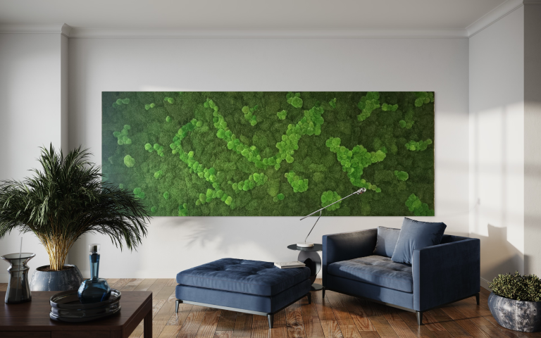 Ein Moosbild als grünes Highlight im Wohnzimmer ist nicht nur eine ästhetische Bereicherung, sondern auch eine einzigartige Verbindung zur Natur,…